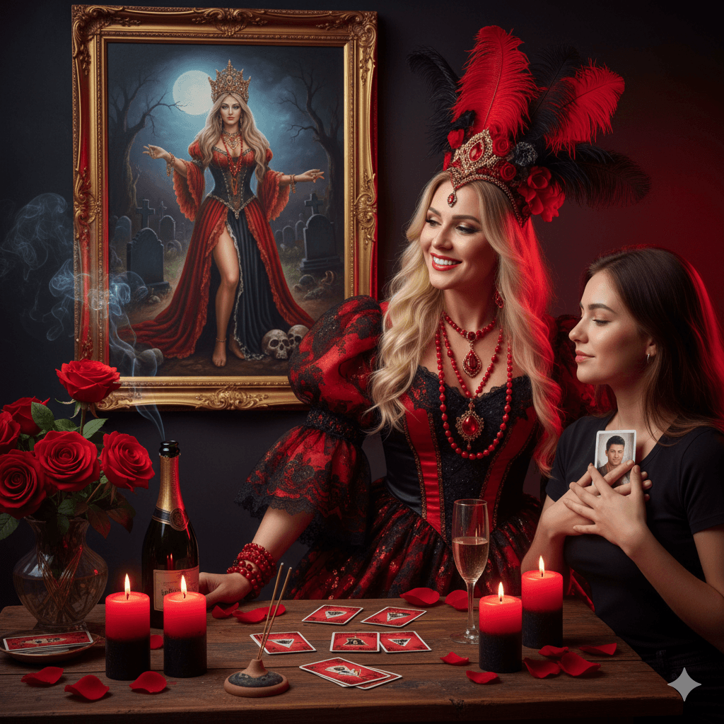 Faça a verdadeira Amarração Amorosa e traga a pessoa amada de volta – Poderosa Maria Padilha, principal entidade que resolve assuntos relacionados ao amor. Através dos rituais de magia, Maria Padilha consegue harmoniza as energias entre casais separados, restabelecendo a conexão espiritual entre eles. Com sua força, ela une os caminhos das duas pessoas, trazendo a pessoa amada de volta para sua vida, com intensidade e determinação.